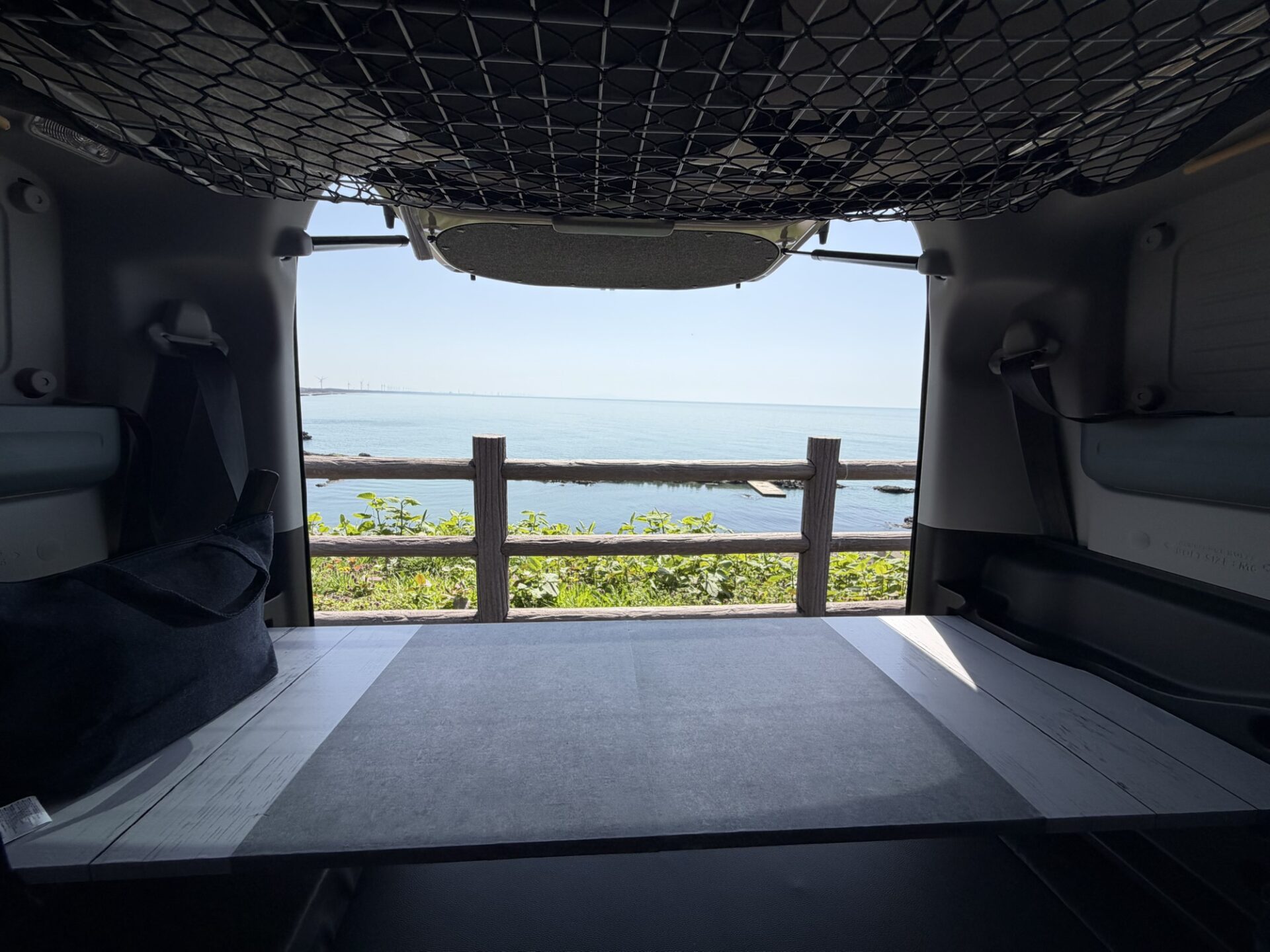 バックドアをガバッと開け放つと、目の前には青い海と空!