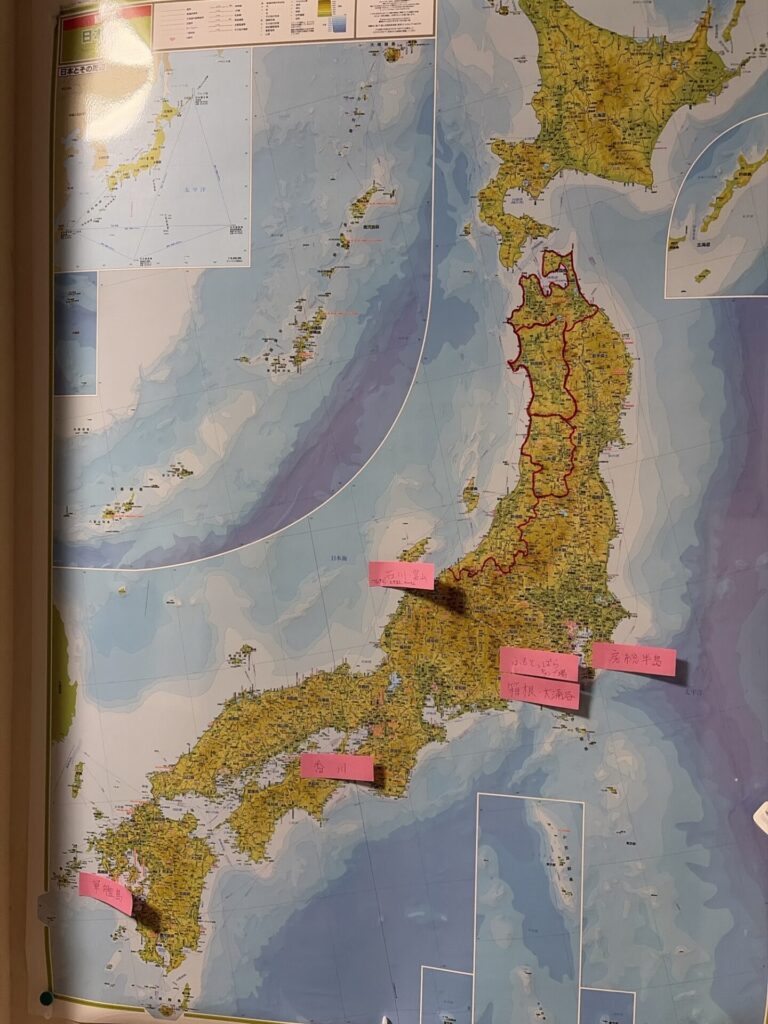 その方法とは、大きな日本地図に「行きたい場所」を書いた付箋を貼っていくというものです。